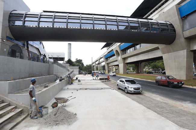 Do lado de fora das estações, a movimentação também era grande, mas de operários. Era visível que, apesar dos anos de atraso da Linha 15, as paradas foram inauguradas sem as obras de acabamento e paisagismo.