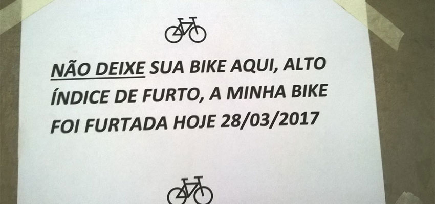 Placa colocada por usuário que teve a bicicleta levada