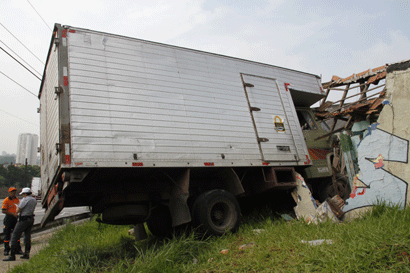 O motorista de um caminhão perdeu o controle da direção e invadiu uma casa na avenida Salim Farah Maluf, na Vila Libanesa, na madrugada desta sexta-feira, dia 10. Com o impacto, o telhado da casa desmoronou e o muro também ficou destruído.
