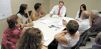 reuniaosecretario1Na tarde de ontem, com a iniciativa do vereador Chico Macena (PT), representantes da comunidade e do conselho gestor da Unidade Básica de Saúde (UBS) Vila Heloisa, na rua Aires Quaresma, Vila Ema, se reuniram com o chefe de gabinete da Secretaria Municipal de Saúde, Odeni de Almeida, na sede do órgão. No encontro os participantes expuseram os problemas da unidade e também cobraram a construção ou aluguel de um novo prédio para sediar o posto de saúde, que atualmente funciona em um imóvel pequeno para o atual número de usuários cadastrados, cerca de 44 mil.