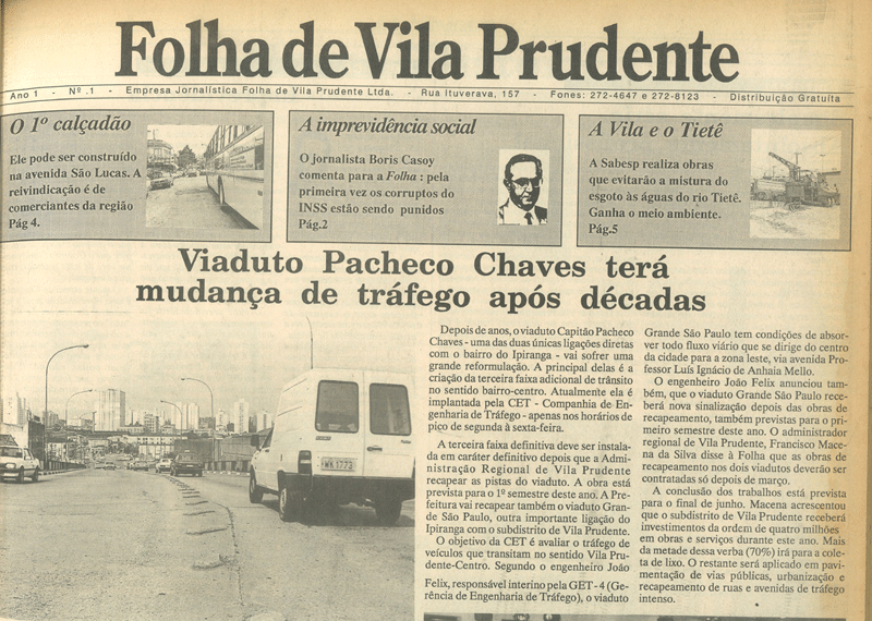 Foi nesse cenário que, em janeiro de 1992, o primeiro número da Folha de Vila Prudente foi às ruas. Era ano de eleição municipal, a primeira de muitas que o jornal cobriu ao longo desses 30 anos, sempre com o diferencial de extrair de cada candidato o compromisso com as causas locais e se eleito, continuar cobrando incessantemente pelos próximos anos. Aliás, essa é a principal e mais fundamental característica da imprescindível imprensa regional: o olhar atento para os problemas locais – que a grande imprensa não tem interesse de acompanhar. Um exemplo é que nessas três décadas, a Folha atendeu desde queixas simples sobre podas de árvores como defendeu a preservação de centenas de espécies, inclusive com a criação do Parque Profª Lydia Natalízio Diogo, o popular Parque de Vila Prudente, cujo embrião começou exatamente na redação do jornal.