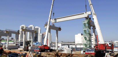 Dois guindastes foram usados para içar a viga de concreto armado que mede 27m de comprimento, 2,50m de altura e 1,10m de largura. O peso aproximado é de 80 toneladas – equivalente a cerca de 100 automóveis. Outras sete vigas semelhantes também serão içadas e de acordo com Avelleda, o trabalho deve estar concluído até domingo. Todas as vigas foram fabricadas no próprio canteiro de obras.