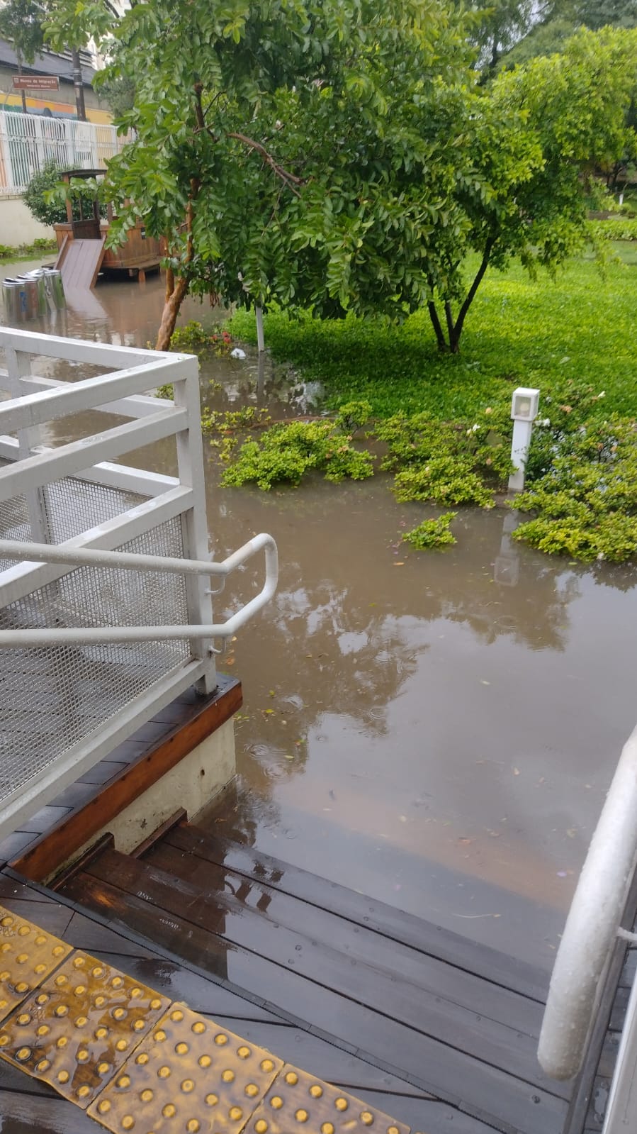 Outro problema foi que o jardim principal do museu e várias rotas de passagem ficaram alagados, deixando os visitantes ilhados. “Quando a enchente na rua baixou e as pessoas estavam ansiosas para ir embora ou pedir socorro para os veículos inundados, a saída do museu pela bilheteria estava fechada e a única opção era o portão principal – cujo acesso continuava cheio. Mesmo assim, os seguranças do local teimavam que as pessoas deveriam se dirigir ao portão alagado, inclusive idosos e crianças. Somente após protestos, reabriram a outra saída. Faltou muito bom senso e cuidado com quem visitava o museu”, comenta uma das visitantes. Por fim, as pessoas relatam que o espaço fechou as portas às 18h, com várias famílias na rua aguardando os guinchos para seus veículos. “Não houve sequer a preocupação da direção do equipamento de pedir apoio da PM ou GCM”.