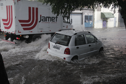 Bastou apenas alguns minutos de chuva forte na tarde desta segunda-feira, dia 12, para a rua José Zappi, na Vila Prudente, ser tomada pela água mais uma vez e transformar-se em um rio. Motoristas chegaram a abandonar seus veículos por conta da força da correnteza. Porém, na mesma velocidade que a enchente se formou, logo em seguida, com a diminuição do volume da chuva, a via voltou a ficar transitável.
